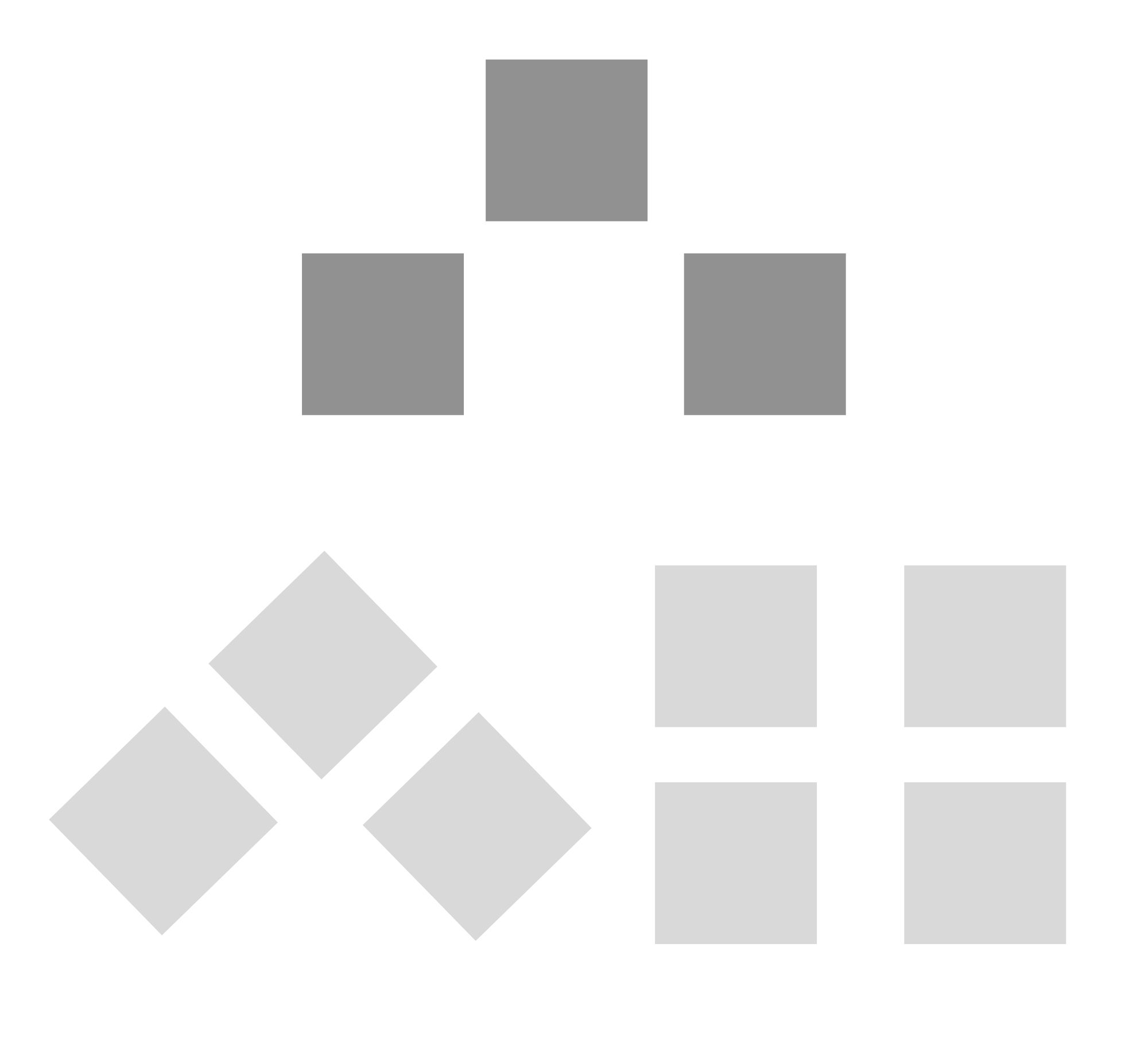 Le forme di sinistra corrispondono maggiormente al modello nel suo aspetto globale (tre elementi disposti a triangolo) mentre quella di destra gli corrisponde maggiormente sul piano del dettaglio (figura composta dai quadrati)
